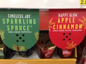 Elsewhere in the store, the Glade winter scents are already on display. My least favorite part of this is that it usually means that the Autumn scents are either gone or will be soon. The good thing is that if you can find them they will often have clearance prices. They are sold out in many stores. The Autumn package art was beautiful and I thought the scents were really nice (unless you don’t like pumpkin, etc.). For somebody who usually prefers natural essential oils, that’s saying something.