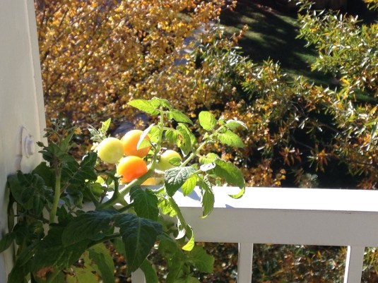 We’re having an unusually warm couple of days and more tomatoes and peppers are still growing and even ripening on our balcony! It helps that the balcony is on the sunny south side of the building. I think having plants close to the building helps extend the growing season too. It’s November!